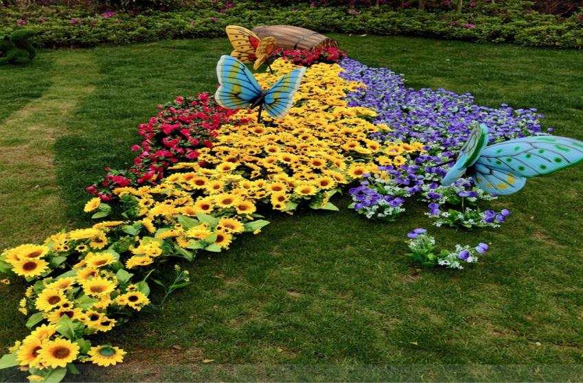 色塊排列可體現(xiàn)園林的形式美。色彩組合的好壞直接影響園林的色彩藝術(shù),組合得好可以收到統(tǒng)一調(diào)和的效果,組合得不好則會(huì)顯得雜亂無(wú)章。